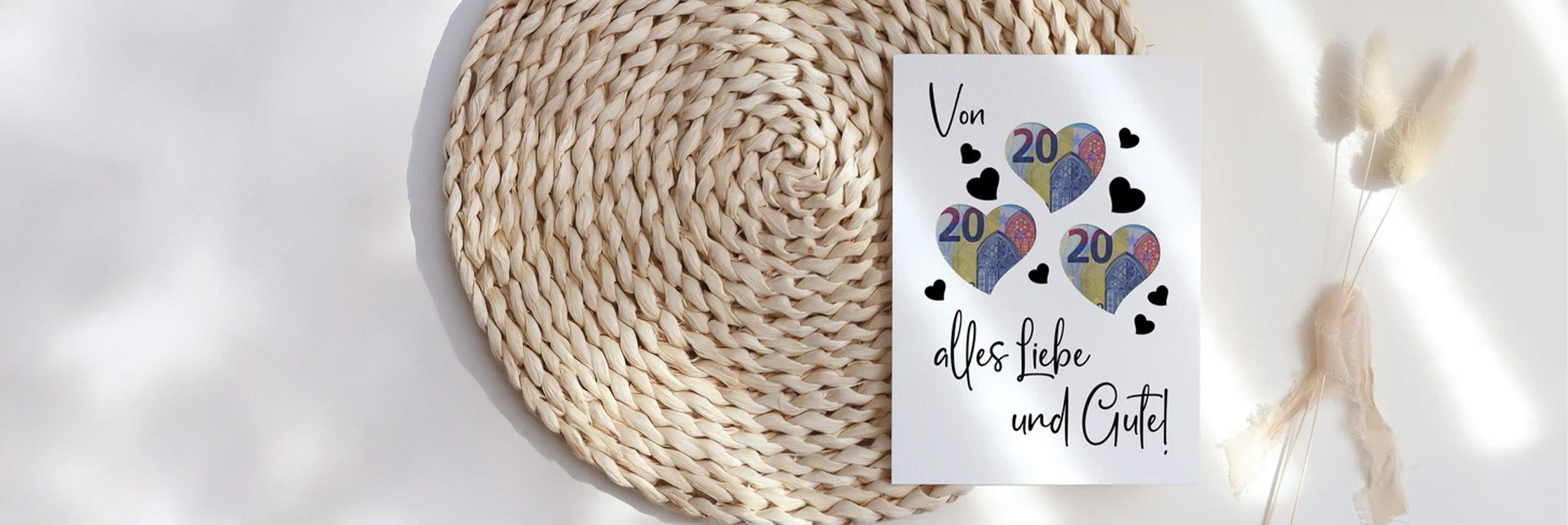 Weil sie mehr sind als nur Geld! Mit den liebevoll gestalteten Vorlagen von Kunstraum verwandelst du jeden Geldschein in ein persönliches, kreatives und einzigartiges Geschenk. Egal ob Geburtstag, Hochzeit, Weihnachten oder einfach nur „Danke“ – unsere Designs bringen Herz, Humor und Stil in jede Geste. Schnell heruntergeladen, einfach ausgedruckt und individuell gestaltet – so wird aus einer einfachen Geldgabe ein echtes Highlight, das in Erinnerung bleibt.