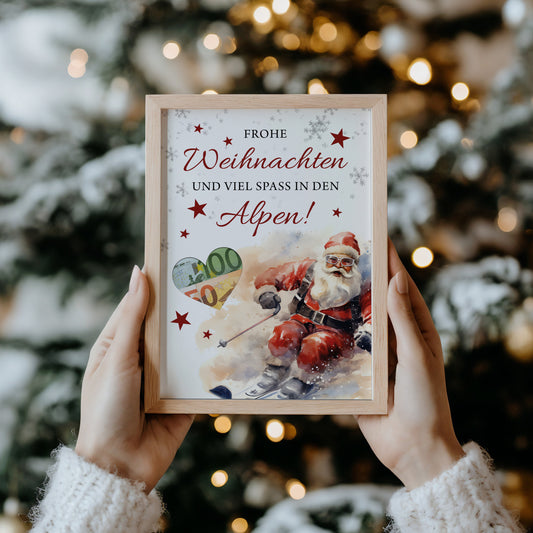Frohe Weihnachten und viel Spaß in den Alpen | Geldgeschenk Skiurlaub