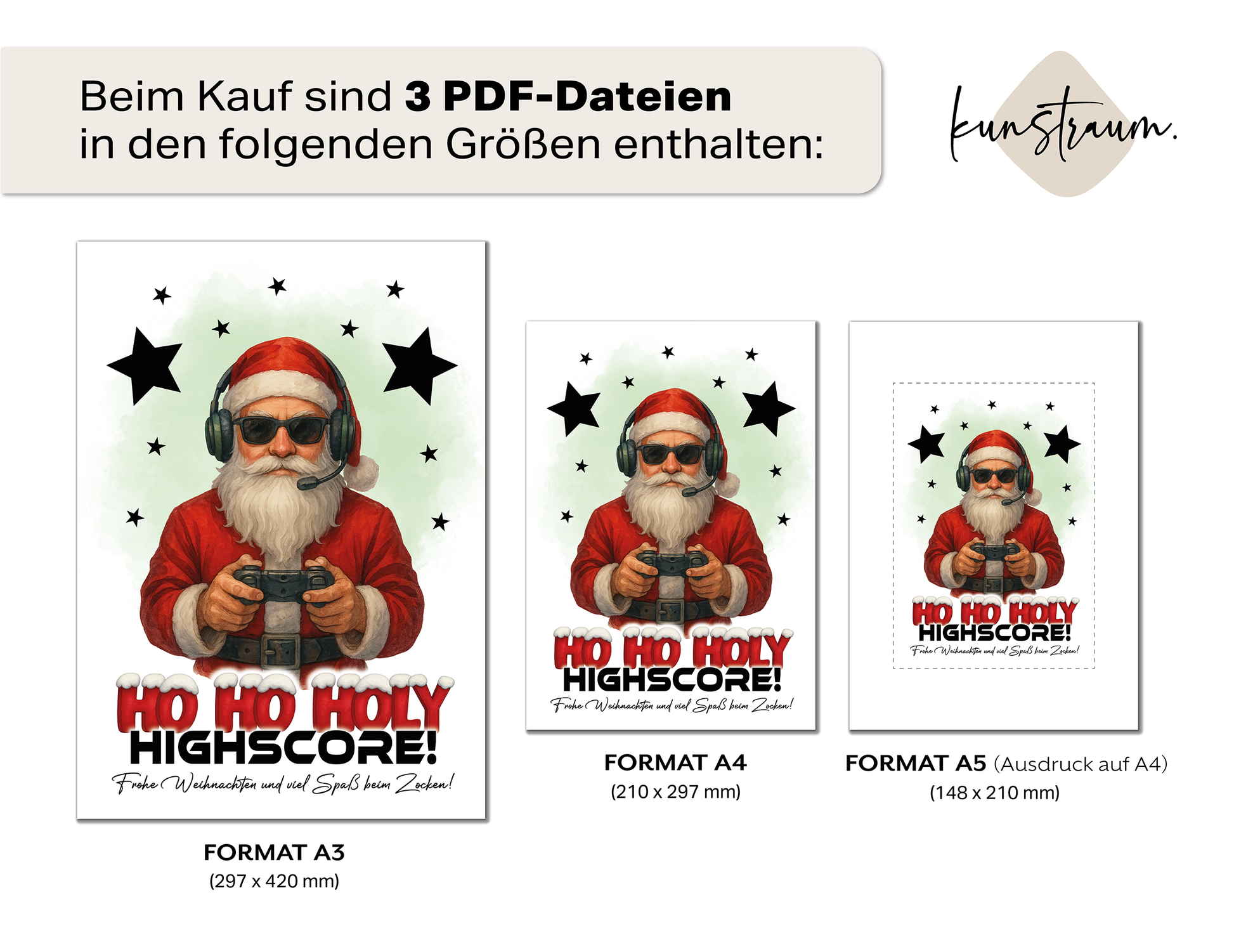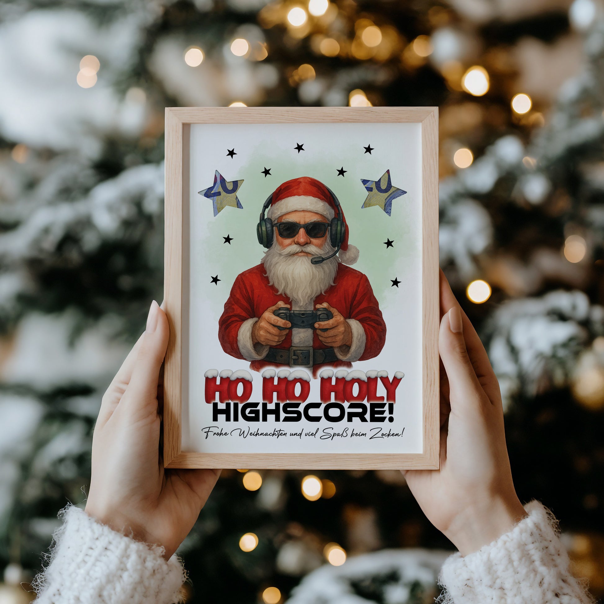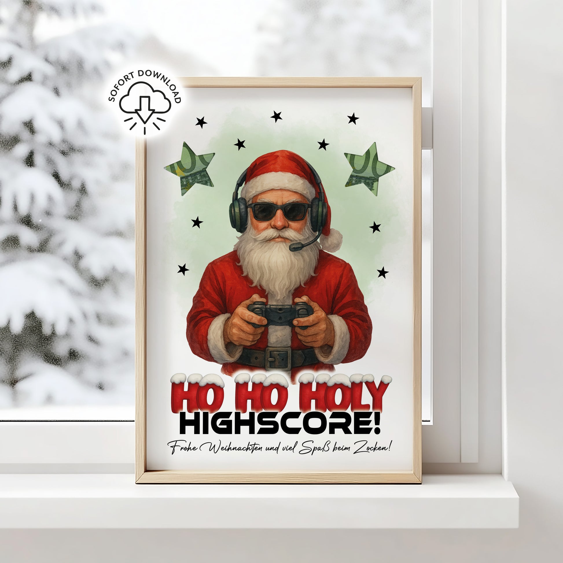 Dieses witzige Printable „HO HO HOLY HIGHSCORE!“ ist das perfekte Weihnachtsgeschenk für alle Gaming-Fans.